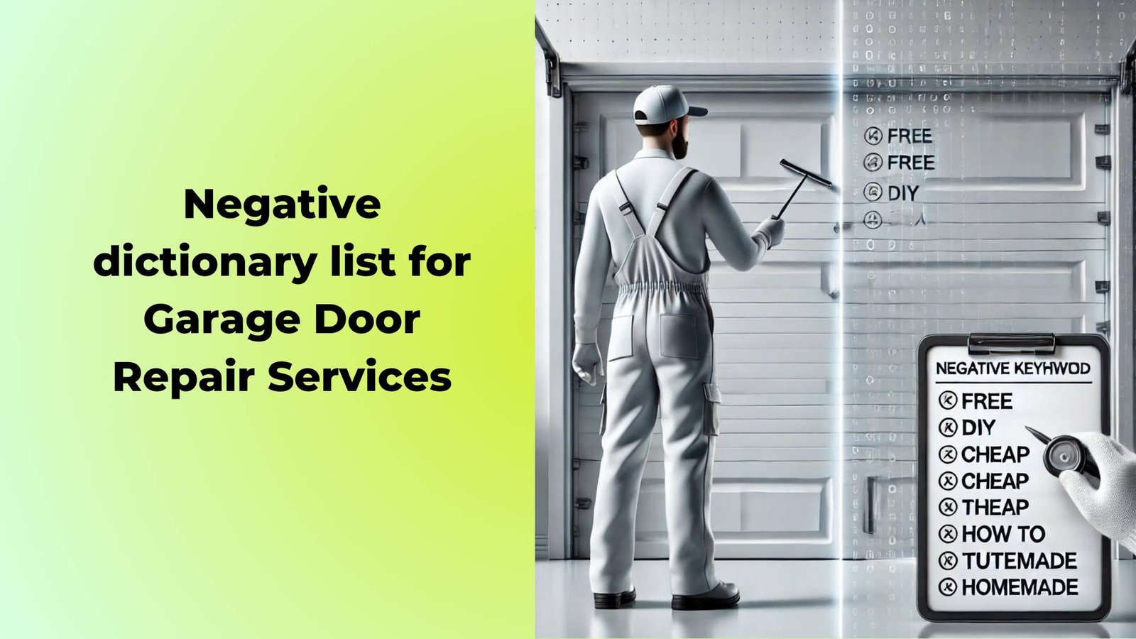 Explore the “Negative dictionary list for Garage Door Repair Services” to grasp the critical terms that you should avoid when seeking garage door solutions. This list helps you navigate through